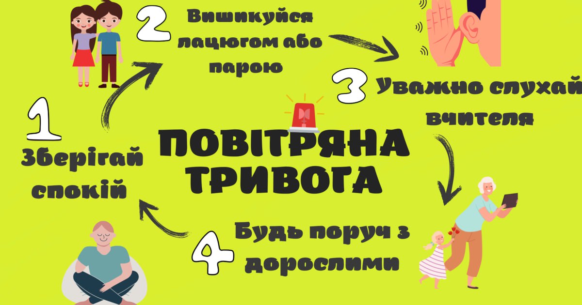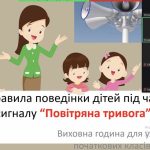 Алгоритму дій у разі оголошення сигналу “Повітряна тривога”. Збереження життя та здоров’я – це головна задача кожної людини. З метою відповідального ставлення до власної безпеки та безпеки оточення в умовах воєнного стану, в ліцеї відбулися виховні години , під час яких учні повторили чіткий алгоритм дій у разі оголошення сигналу «Повітряна тривога».Діти отримали пояснення, що робити, якщо сигнал застав під час навчання, в дорозі або вдома .