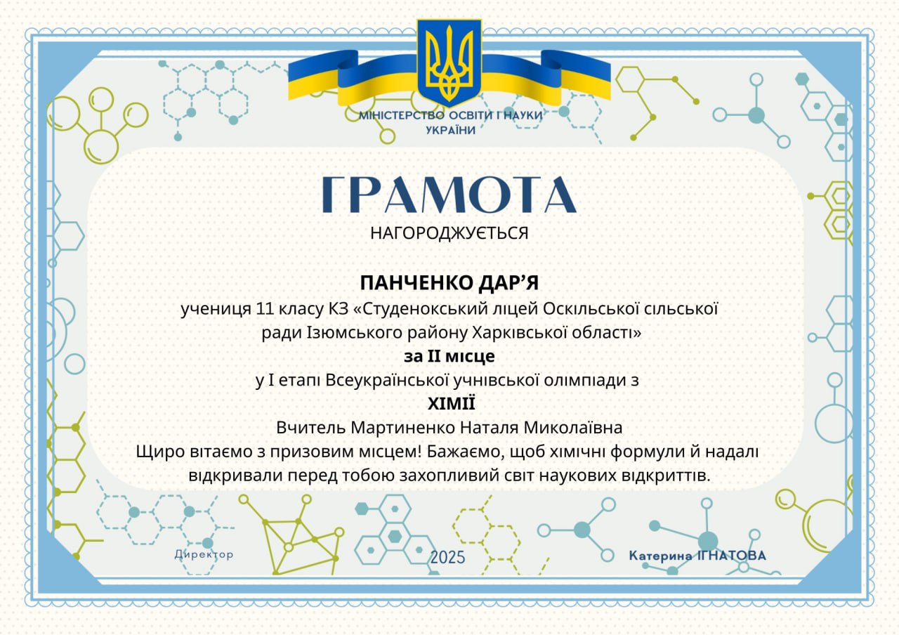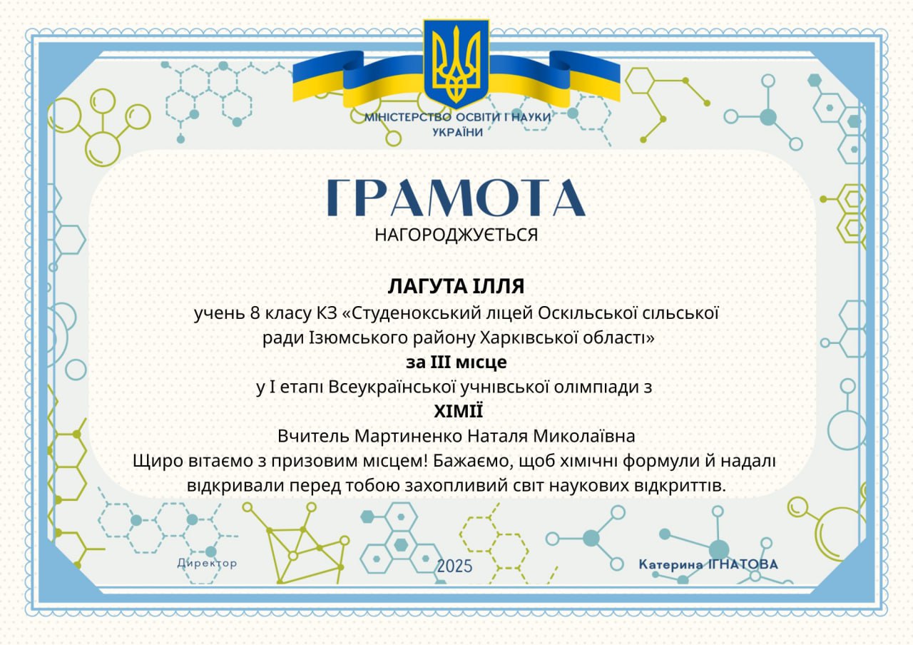 Щиро вітаємо з призовими місцями! Бажаємо, щоб хімічні формули й надалі відкривали перед вами захопливий світ наукових відкриттів.