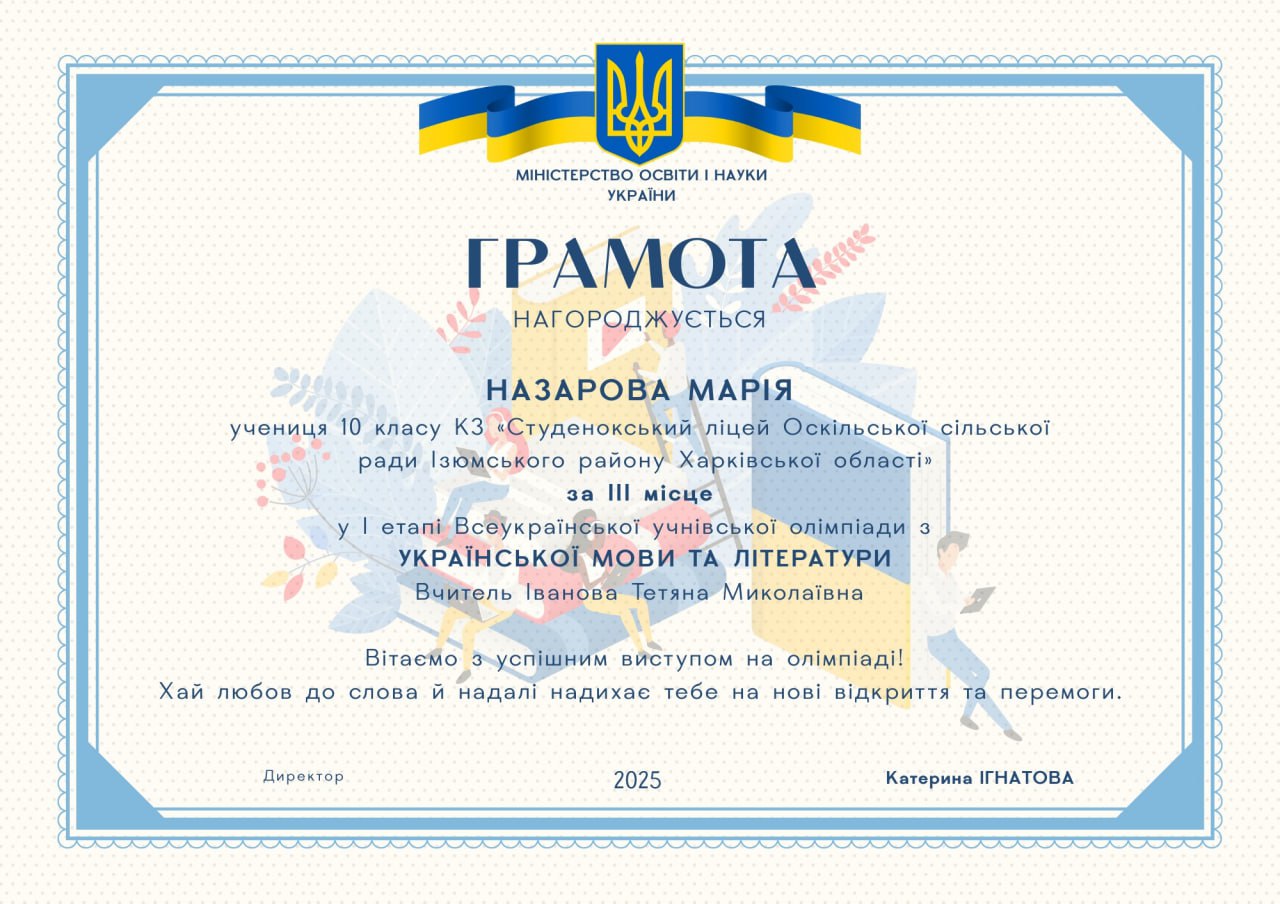 ВІТАЄМО ПРИЗЕРІВ ОЛІМПІАДИ З УКРАЇНСЬКОЇ МОВИ І ЛІТЕРАТУРИ